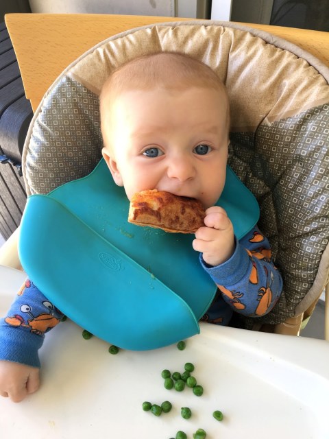 Thatch is eating food like it’s his job. Which it is, I guess! His favorites are peaches, watermelon, raspberries, sweet potatoes and he loves a good pizza crust. ALL THE FOOD. He would rather feed himself than have me feed him, already seems pretty independent. Still nursing 4-5 times through the day and night. Still won’t take a bottle, but is pretty good with a straw. Sleeping in his crib! In his own room! For nights and naps, hallelujah. Doing two solid naps a day, as long as we are home.