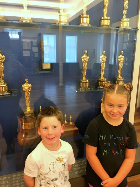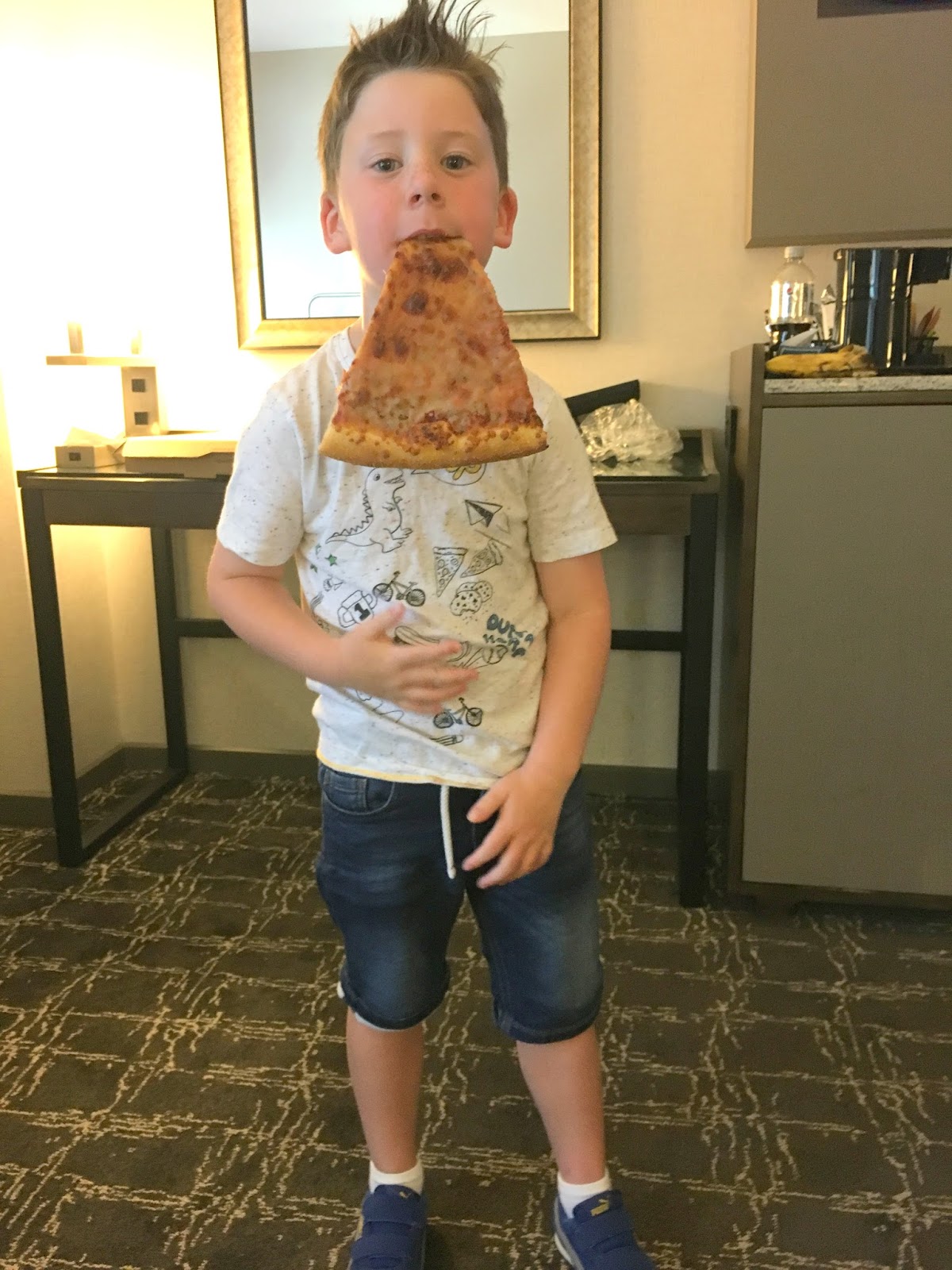 We scarfed some pizza down in our hotel and then walked to the theater. Extra special points for Jazz, our childcare situation changed after we bought tickets and he volunteered to sit out of the show to watch the kids so I could go. That is true love. Kids were just excited to be in a hotel.