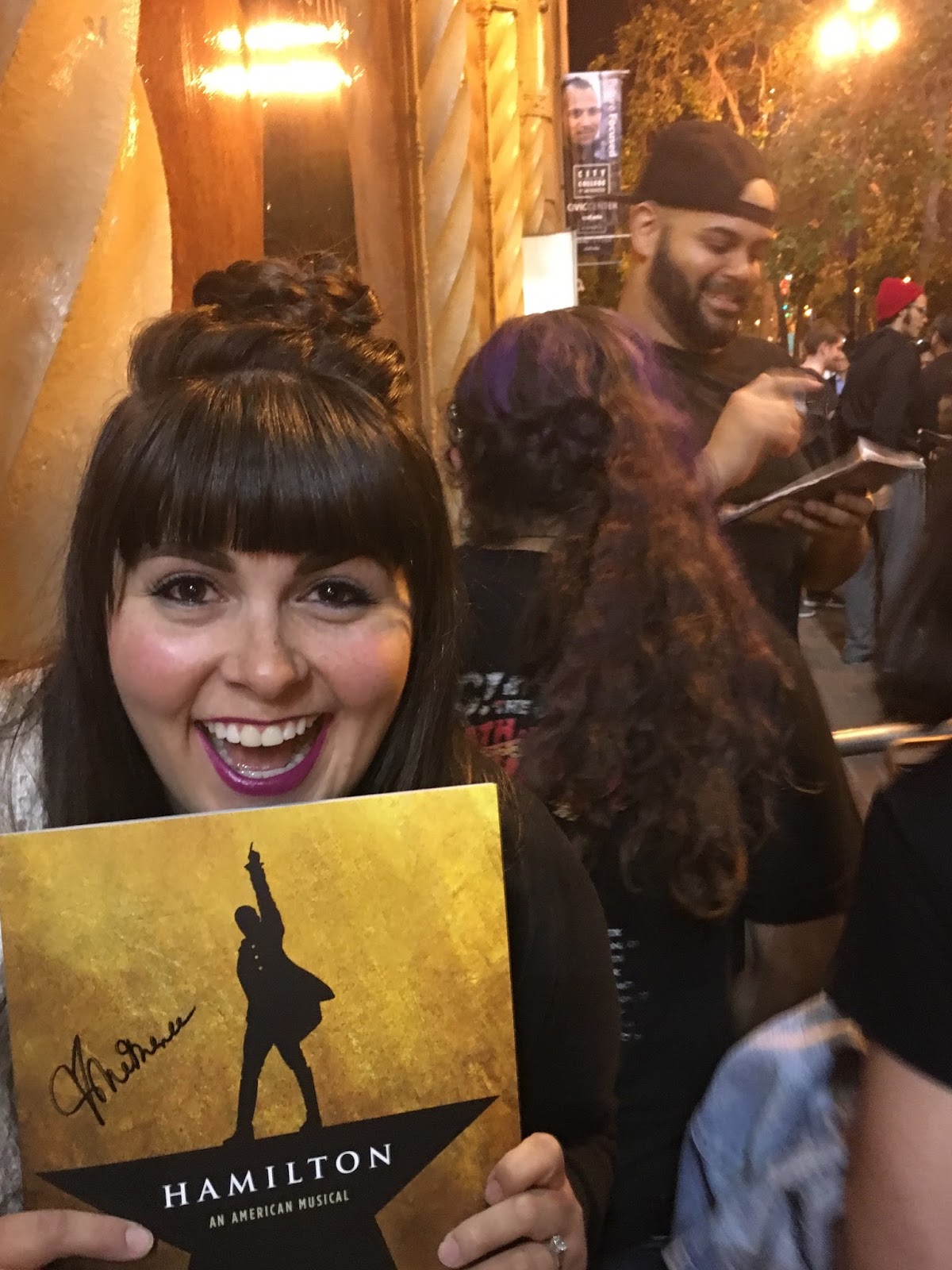 Hard to describe it without sounding trite but it was just start to finish, totally mind blowing. There are no stage curtains, no overture, the music starts and it plays through for 2 1/2 hours. I think I sat with my mouth open and my eyes leaking for the entire show. Every bit was perfectly choreographed and staged, the lighting was incredible… the MUSIC. Burr was amazing, Washington killed it. And Rory O’Malley as King George! Straight from Broadway! So So brilliant. I ugly cried. Better than I ever imagined it would be. Best piece of art in any form I have ever seen in real life.