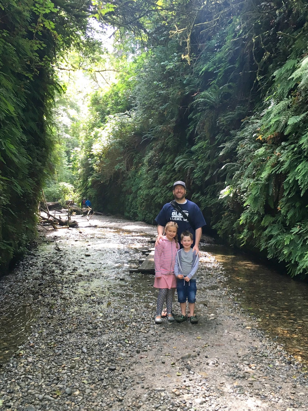 After the FAIL of agate beach, we were searching the interwebs for good places to go explore on Sunday. I came across a little place called Fern Canyon, about 45 minutes away, that was supposed to be incredible, was even a film location for Jurassic Park 2. So we set the GPS! It was actually wayyyy off the map through the state park on a dirt road for a long ways, Linc kept asking “when are we gonna be therrrrrrre.”