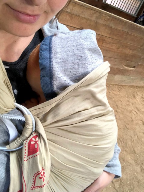 | he fell asleep! In the sling! Bless him. |