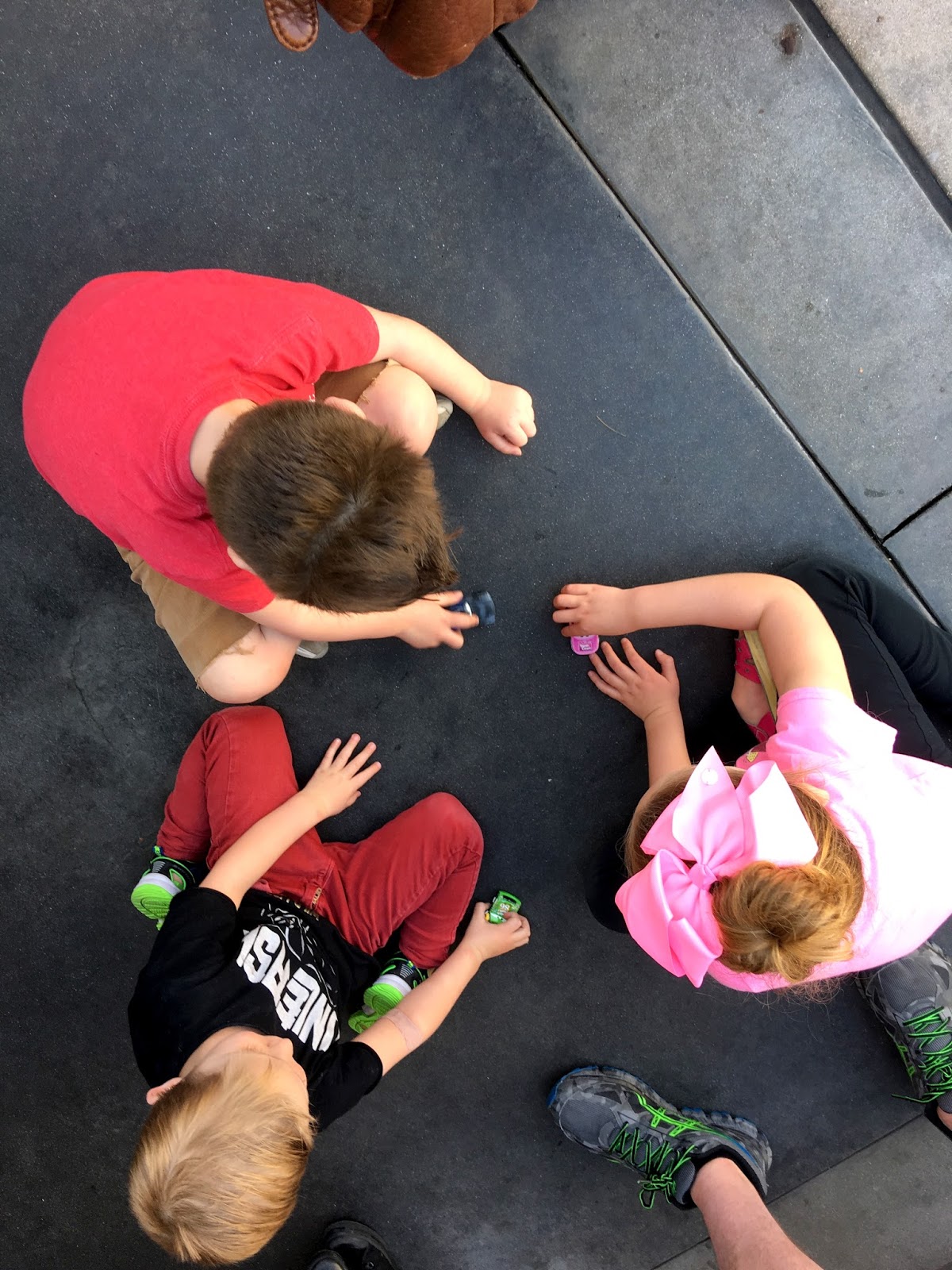 Mo and JR gave the kids these little cars- they kept them in their pockets and pulled them out in line to play. It was really fun and Lincoln loved being in charge of his own toy.