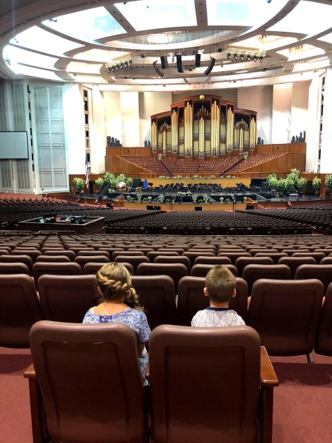 We walked around the north side of Temple Square and decided last minute to pop over to the Conference Center so the kids could get an idea of the massive scale of the building. This sweet volunteer gave us the mini tour since we were short on time (toddler attention span) and led us downstairs to get a better view. There was even someone practicing the organ! Lucky day!