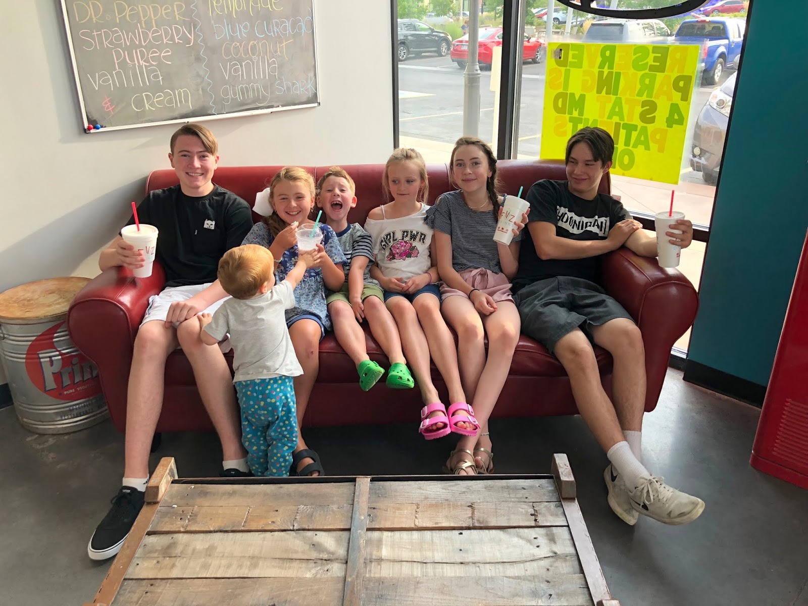 | Fizz with all the cousins! Thatcher tryin’ to swipe Izzie’s drink. |