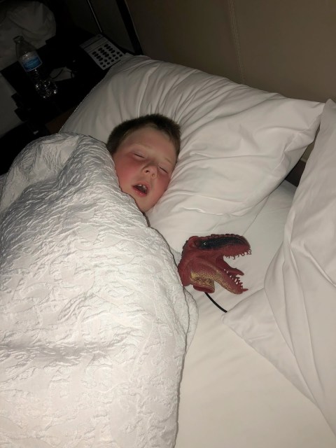 | on the way from the play area to the car, Thatcher fell asleep like this. totally out cold. |