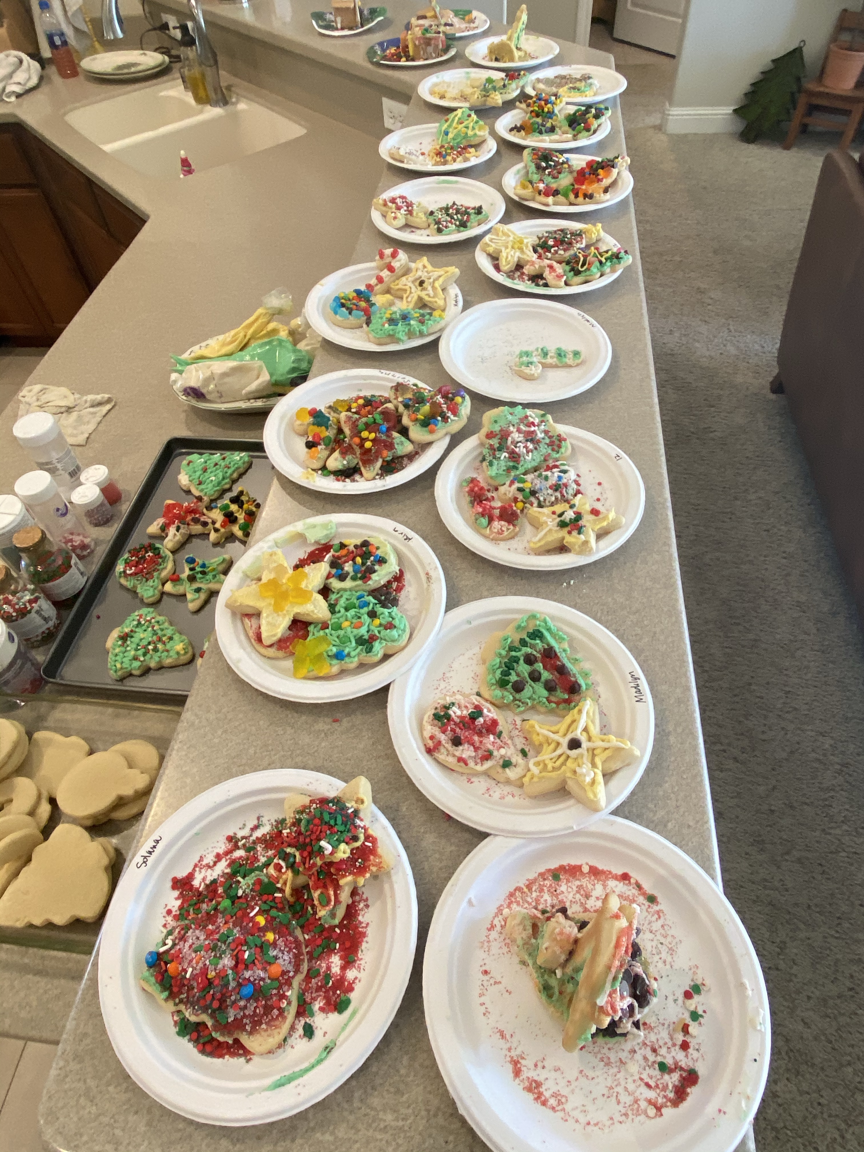 Alright the second half. Isabelle wanted a cookie decorating party with her friends- so I planned for the 23rd like A CRAZY PERSON. They decorated sugar cookies, then Grandma came over did her famous rendition of The Grinch. And then we made SLIME. 48 hours before Christmas morning. If this doesn’t get me into the heaven then I give up.