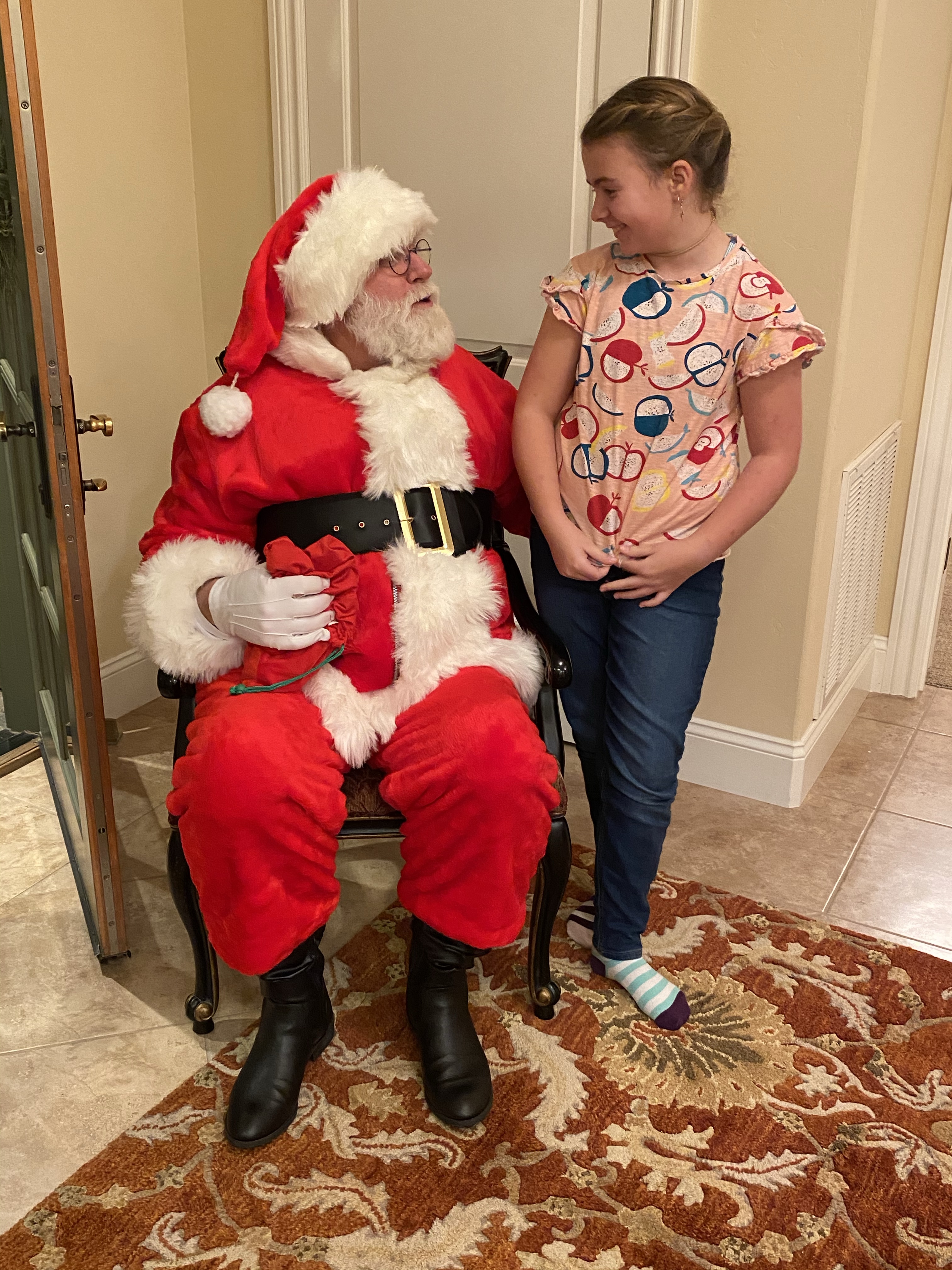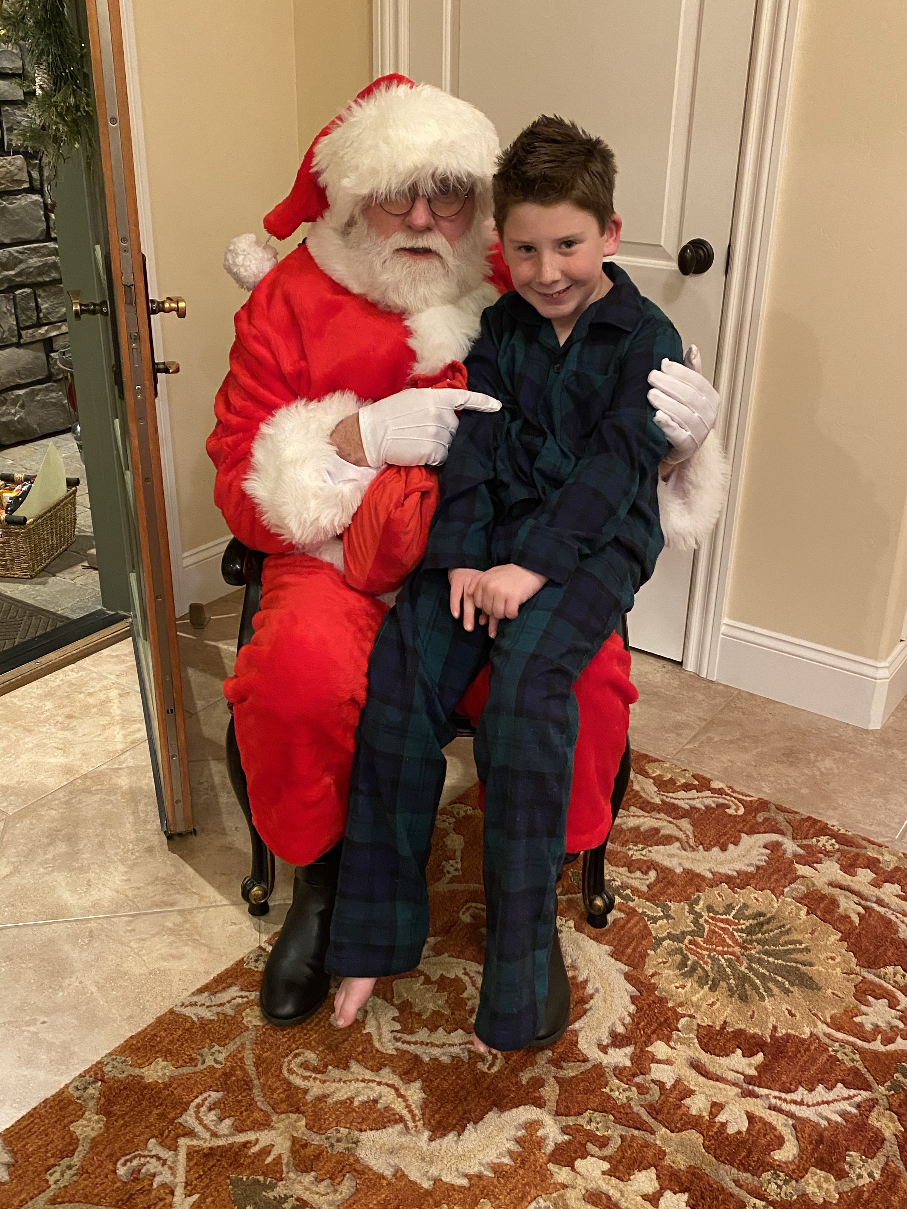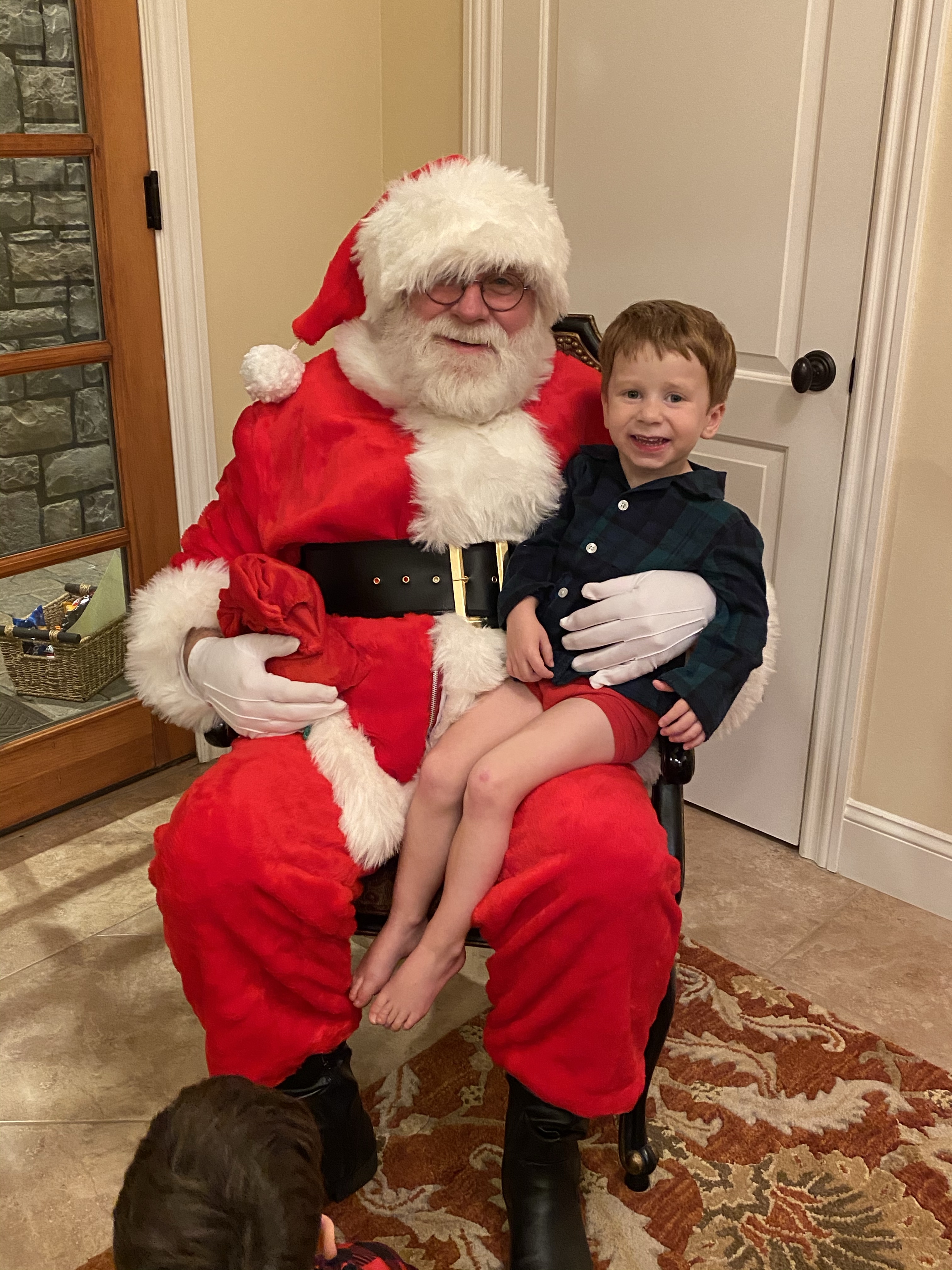 Then Santa Dave came by on his way to the North Pole to start his Christmas Deliveries. I can’t remember if I’ve written down this story but it needs to be recorded. One day my mom went into the Hunt’s Electric, a small motors repair shop. (As one does.) This nice man named Dave took care of her. She said- hey you look a lot like Santa Claus. If I get you a suit and pay you a hundred bucks, would you come by on Christmas Eve? What size are you? And boom, Santa Dave was born. This is my mother you guys, if there is a will, there’s a way. So Santa Dave shows up with Christmas bells and a bag of candy canes and the kids take turn on his lap- he is the nicest guy and actually we found a connection through a mutual friend and he came to the Preschool for us for the last few years too.