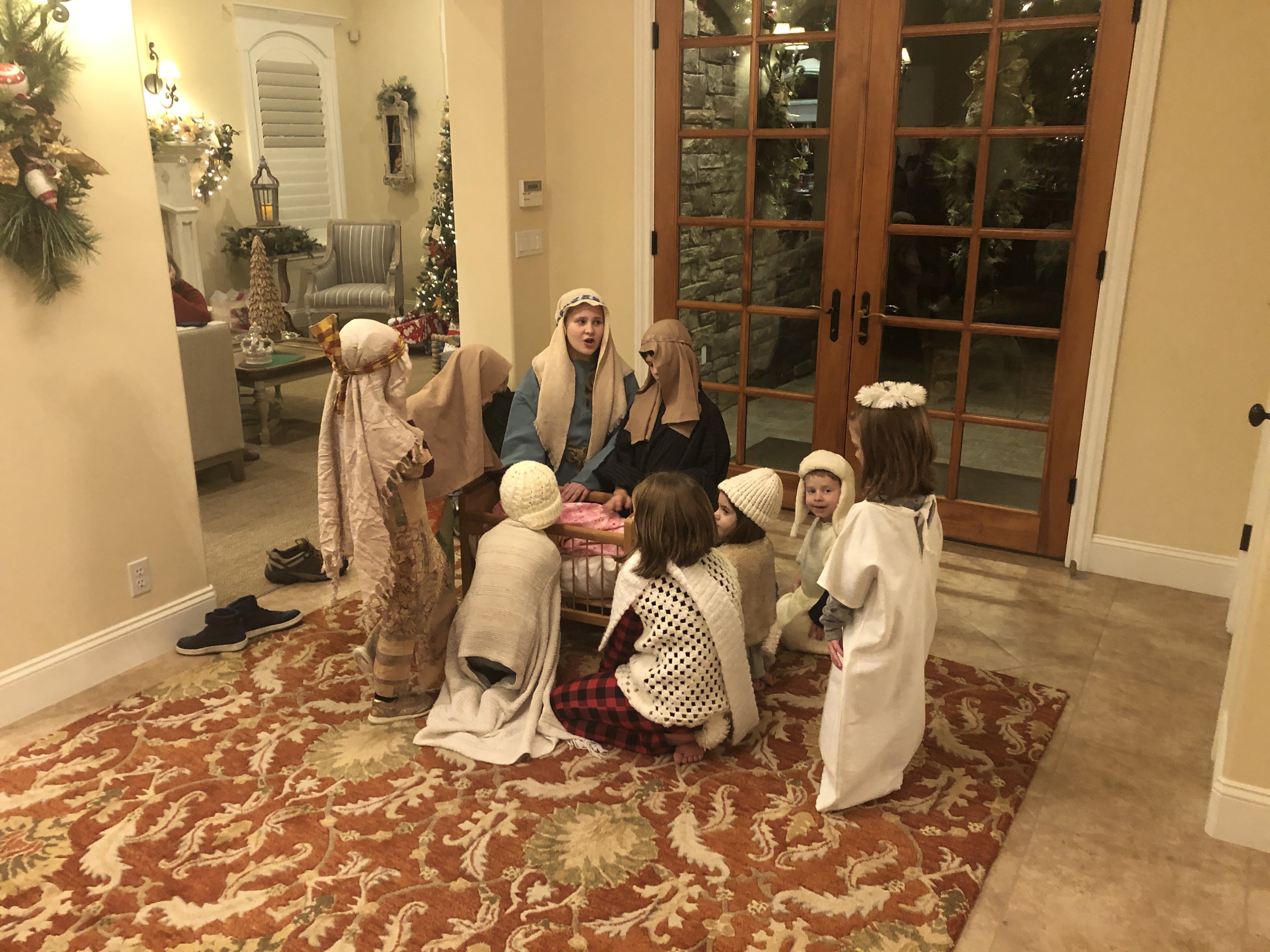 Christmas Eve dinner at Mom and Dad’s like usual, crab and clam chowder. Love that tradition so much! We did the live Nativity reading too- when we started this, we had zero kids and all the adults played the parts. Now there are so many kids, the parents just get to watch and giggle at the sheep and the Wise Men with crowns sliding off their heads.