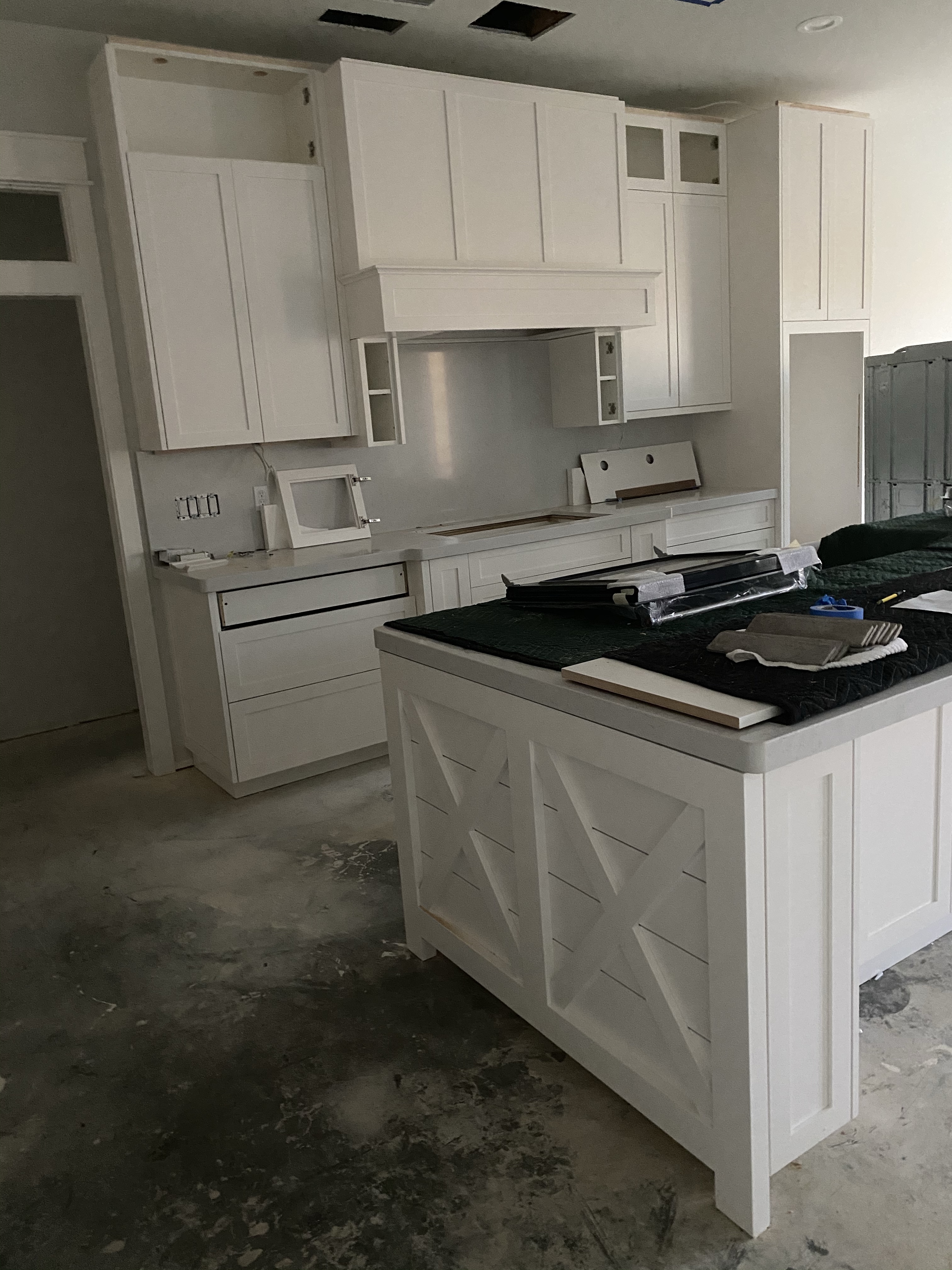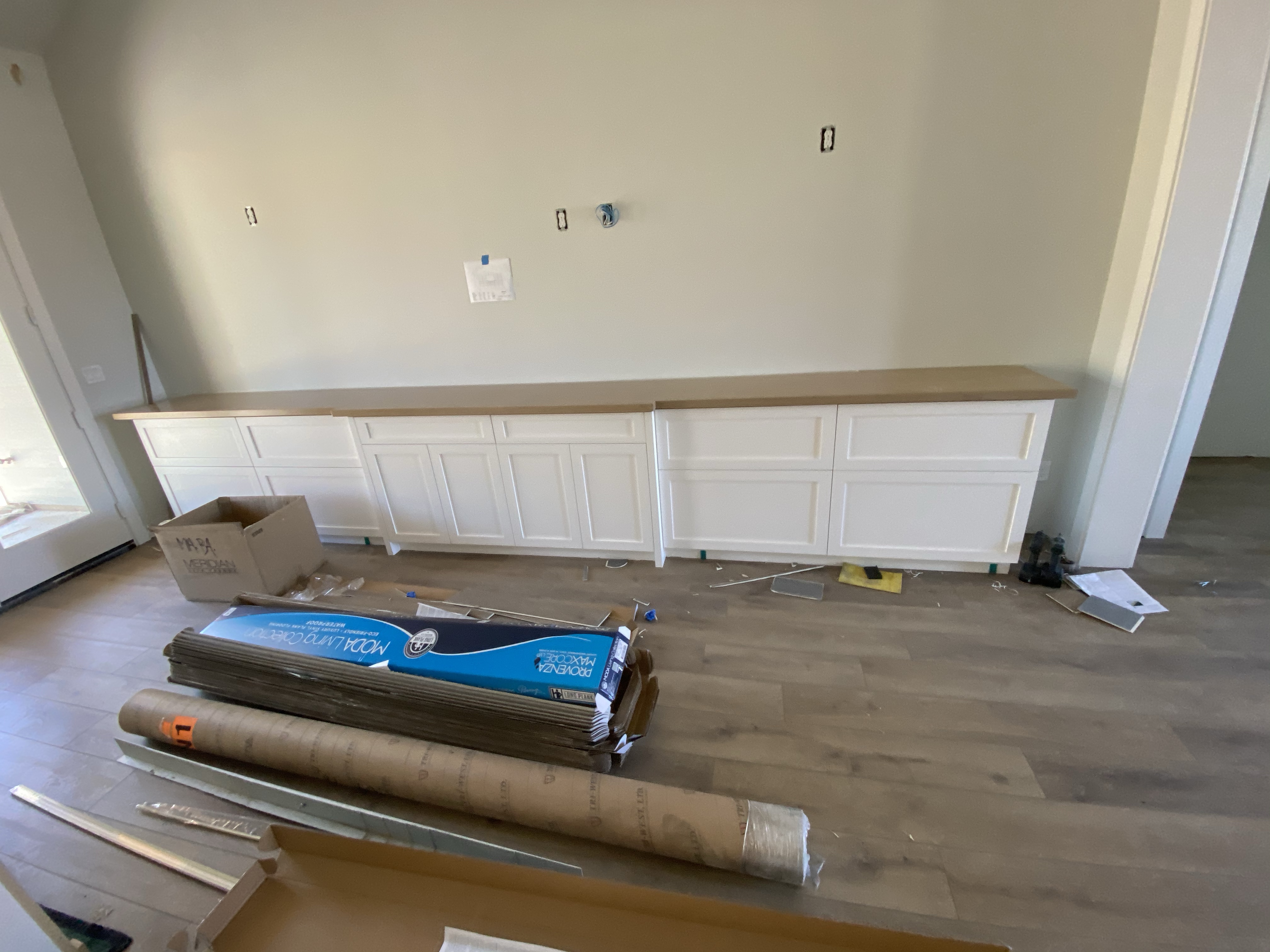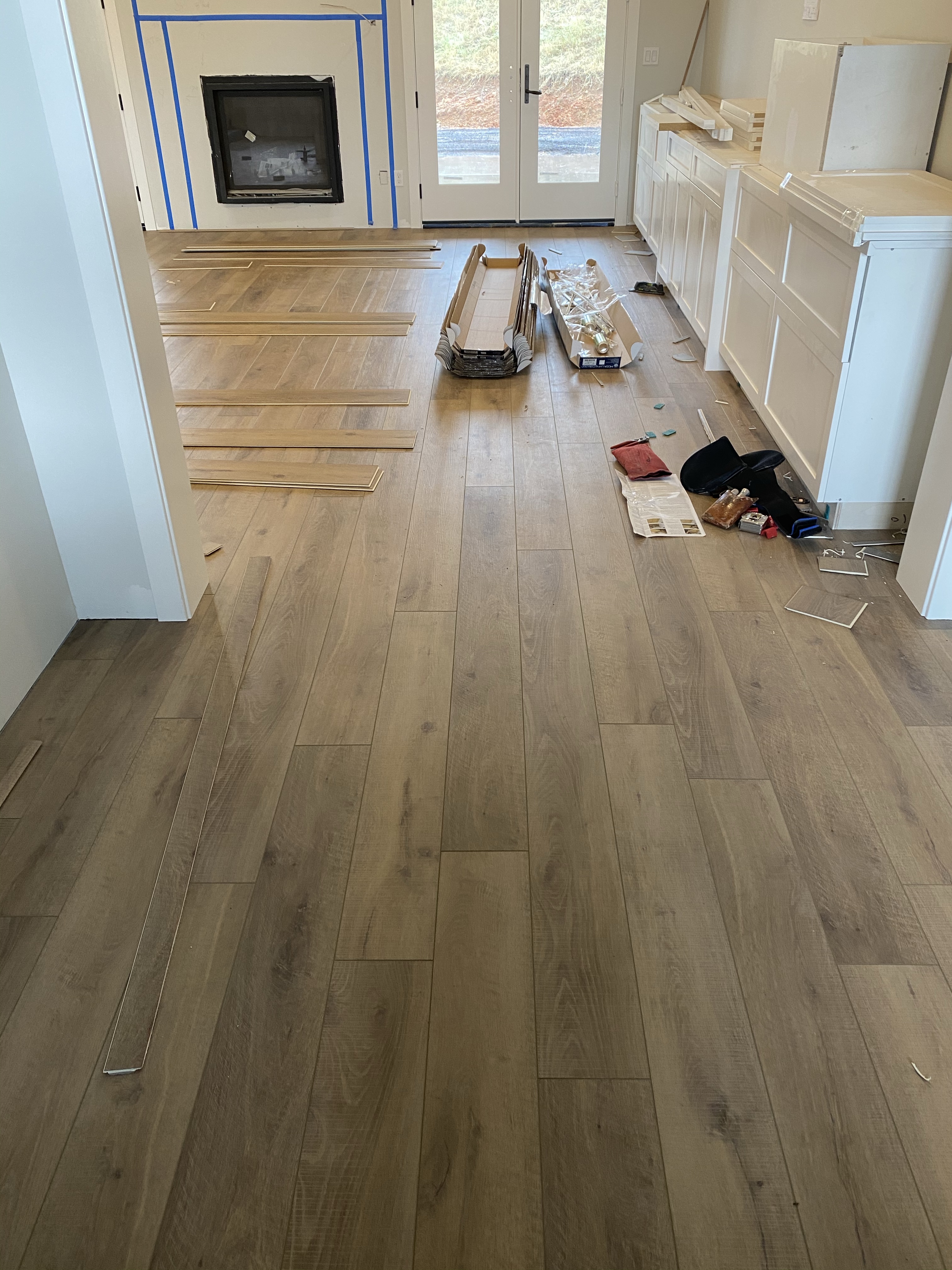 After the cabinets went in, the countertops and sinks went in. They started on the floor. I think maybe floor was the most I have spent on any decision ever in my life. There are so many options, and we did the same floor throughout (except kids bedrooms) so I wanted to be TOTALLY SURE it was THE ONE. They were so super nice at the flooring store they let me borrow and take home so many samples to compare them in the light with the cabinets and everything.