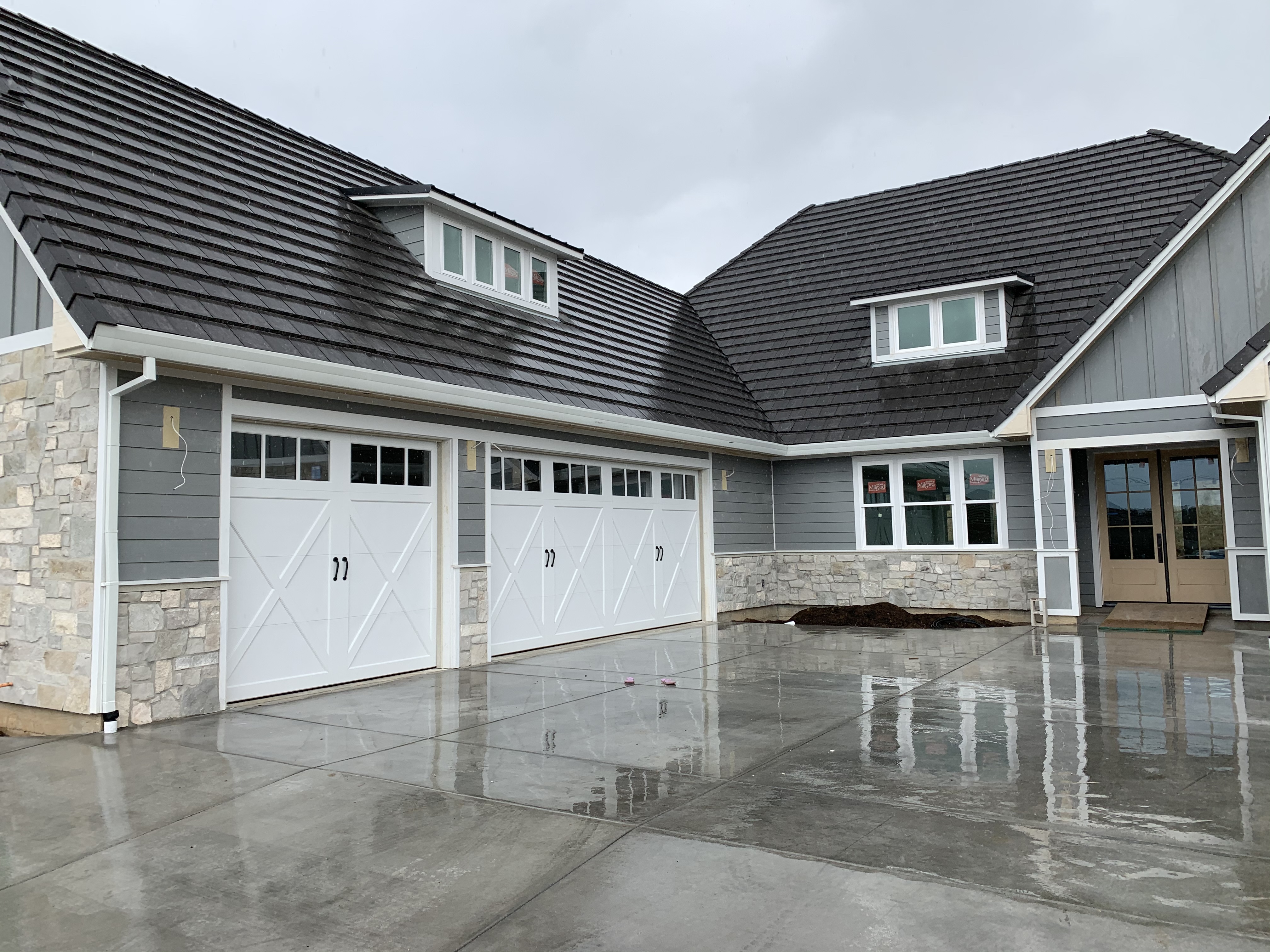 Exterior was almost done at this point, they put up the stone and did the grout or whatever it’s called outside. Mortar? Maybe that. We got garage doors too, and house numbers. So many details. Pretty sure this is boring for everyone but me. It just consumed so much of my brainpower for two solid years, seeing it come together in real life was kind of awesome.