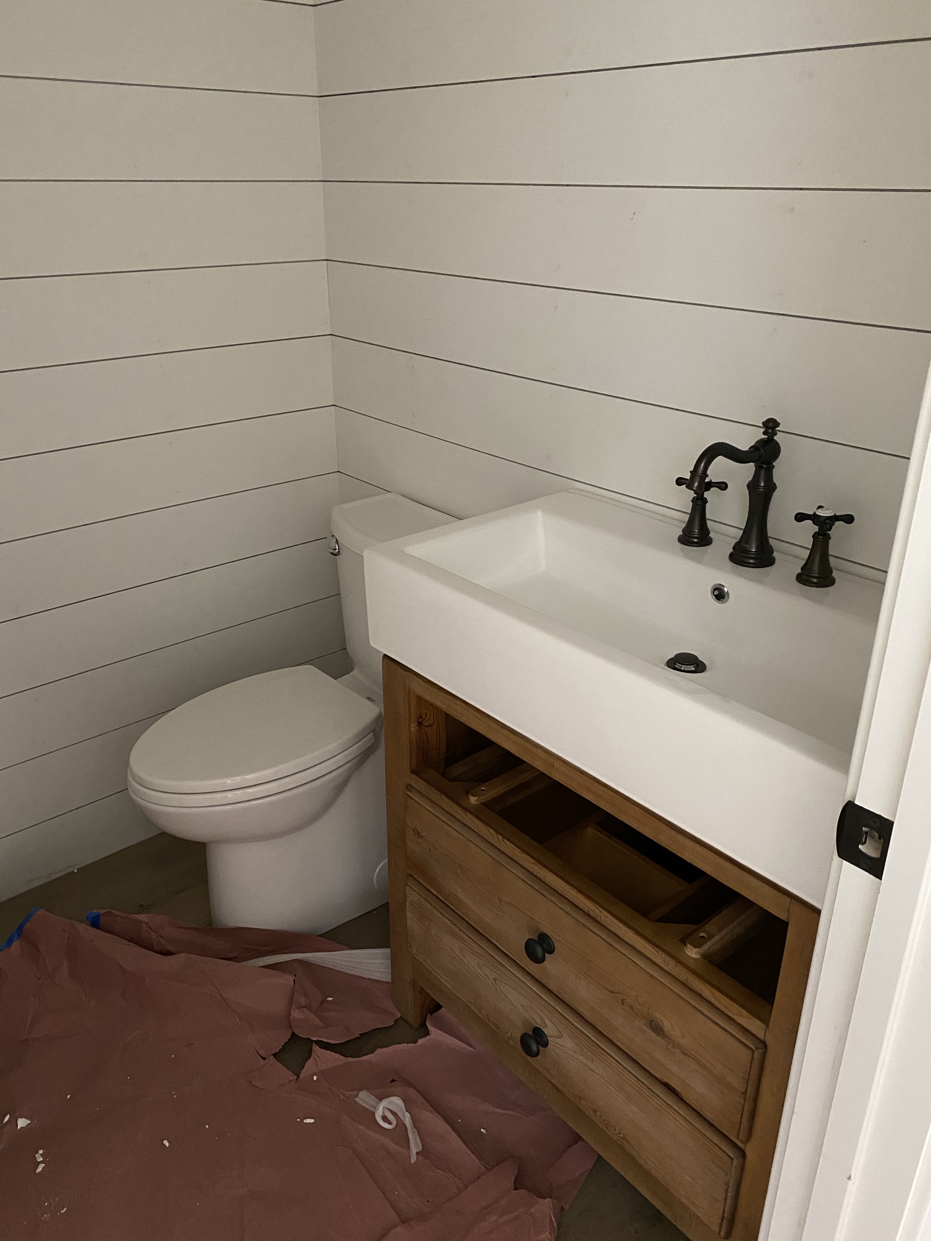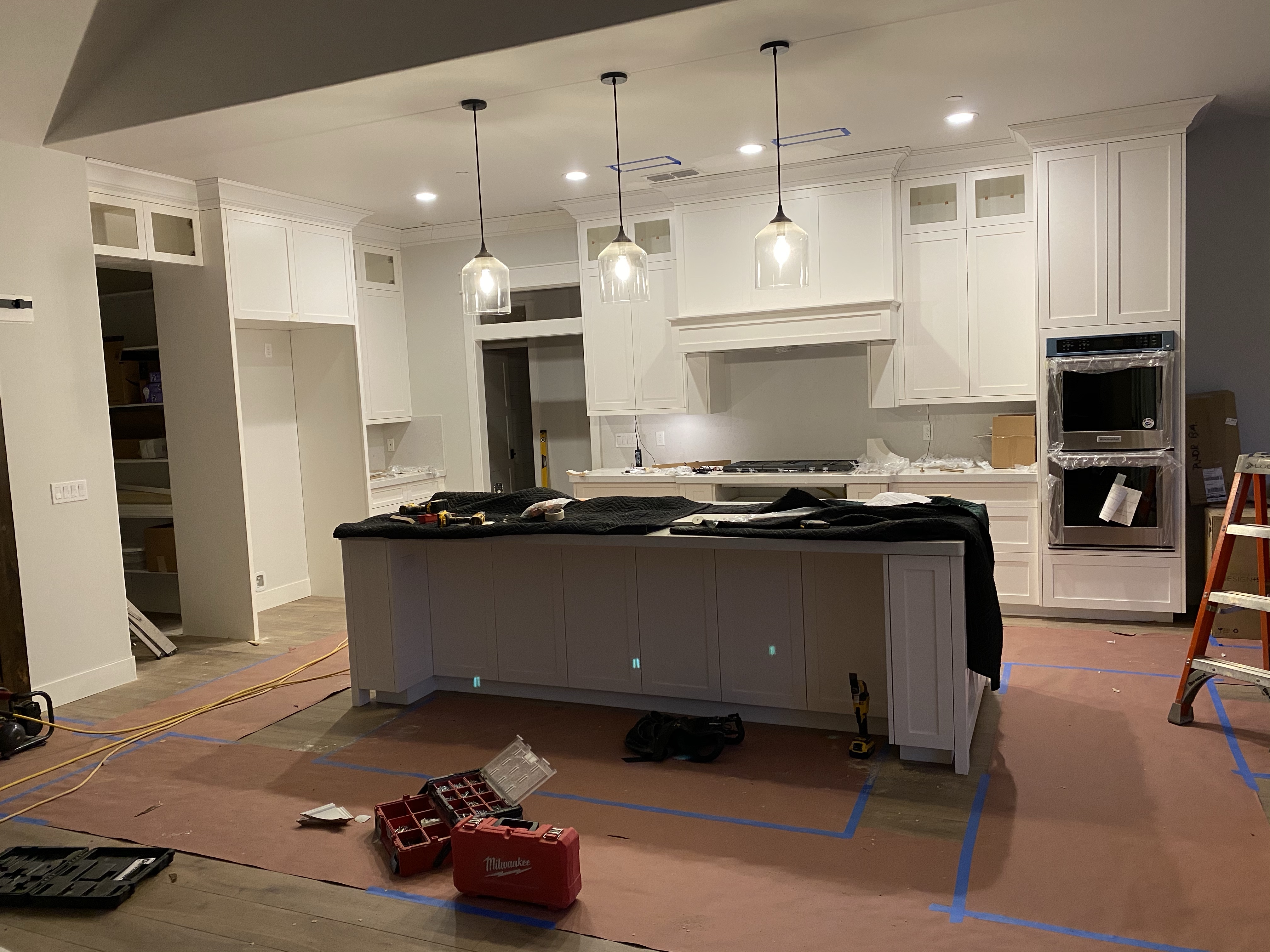 After the floor, stuff happened quickly. Vanities, sinks, faucets, lighting, fireplace tile. We had our finish carpenter build our fireplace mantle and I just taped out exactly what I wanted, measured it all out, showed him some pictures, and he built it. People are so talented, I appreciate that kind of stuff so much more now.