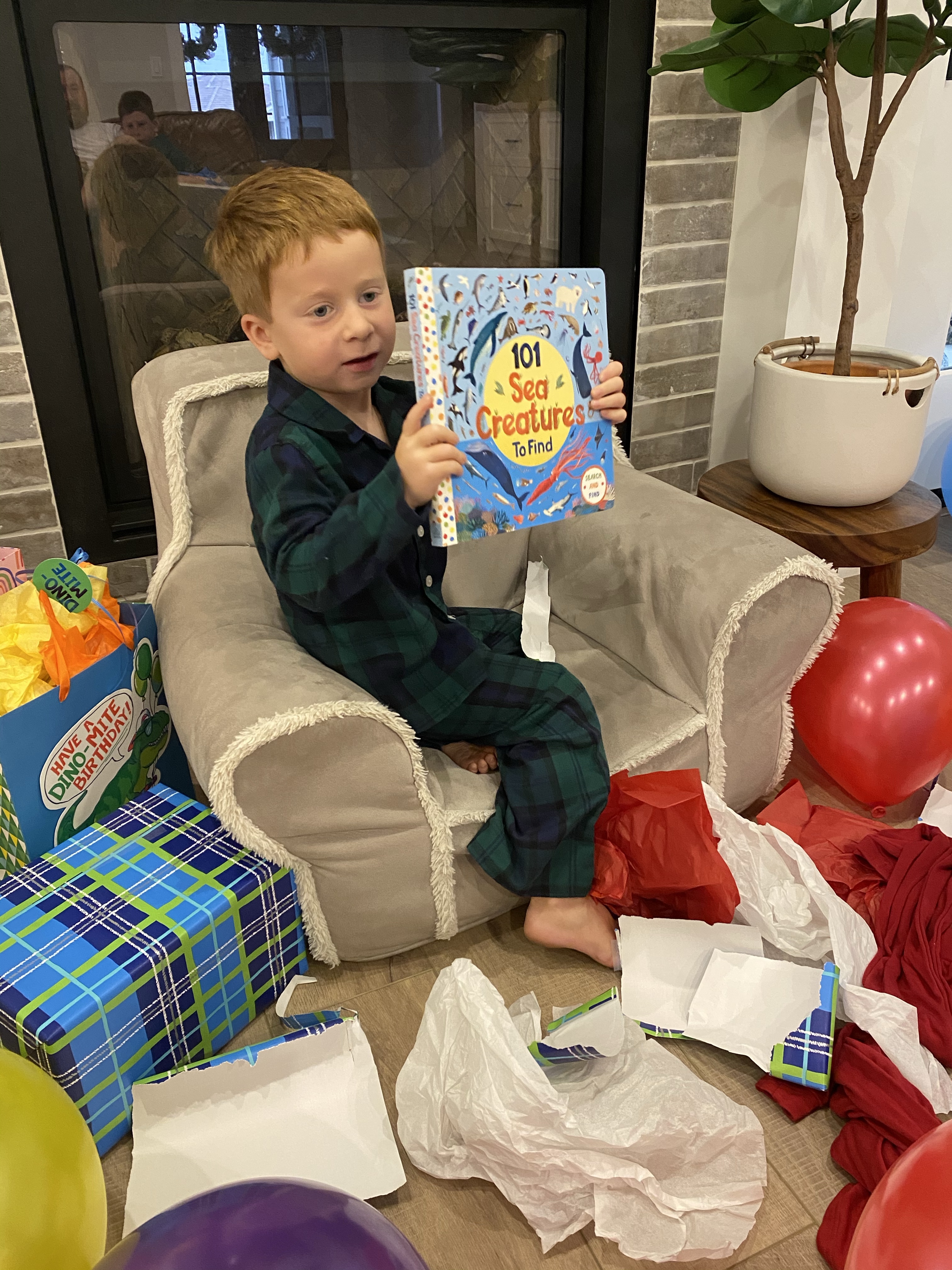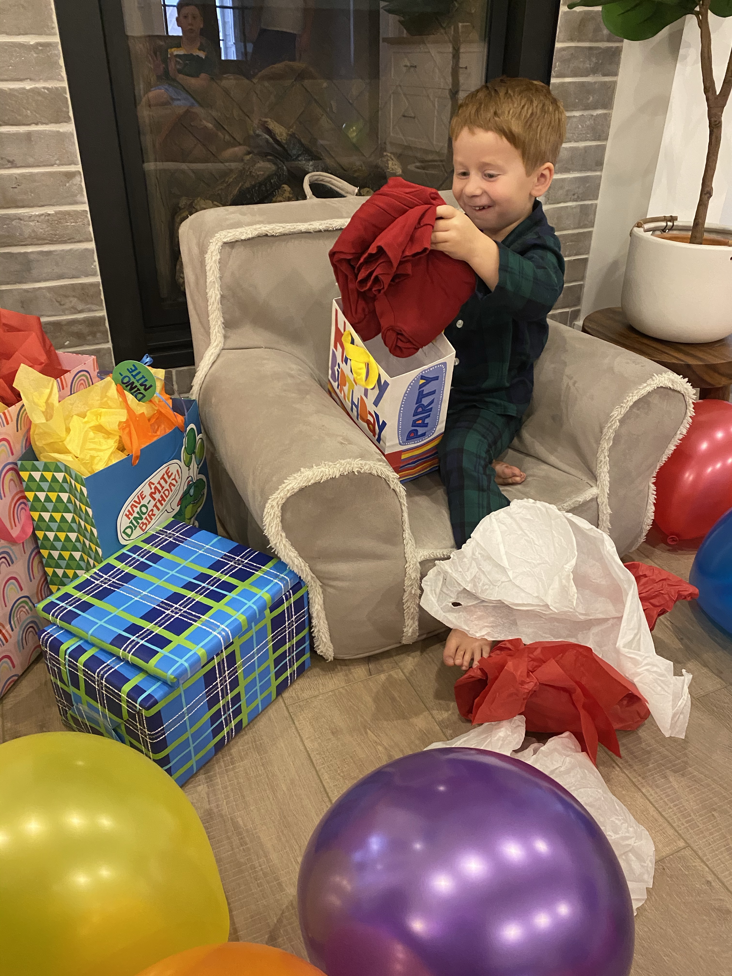 From instagram: Thatcher is four today! Four years ago he came as our ultimate rainbow, a giant exhale after holding our breath for three years. He wanted rainbow everything today and we filled the day with his favorite things. Thatcher loves PJ Mask, all of his taggies, and wearing his shorts backwards to have better access to the pockets. He is really great at puzzles, loves living across from Rhett and he makes the BEST faces. Happy Birthday to our ginger love!