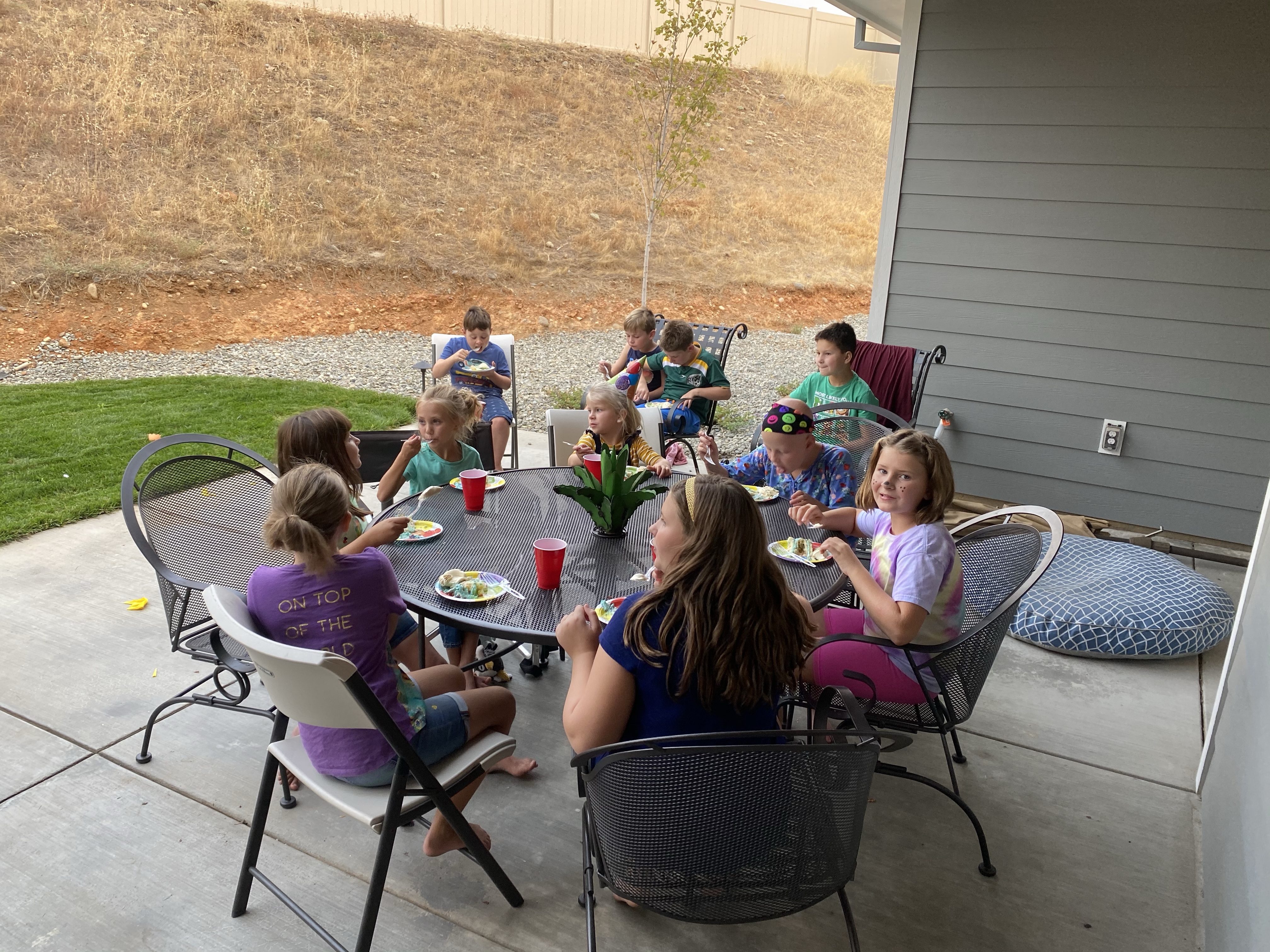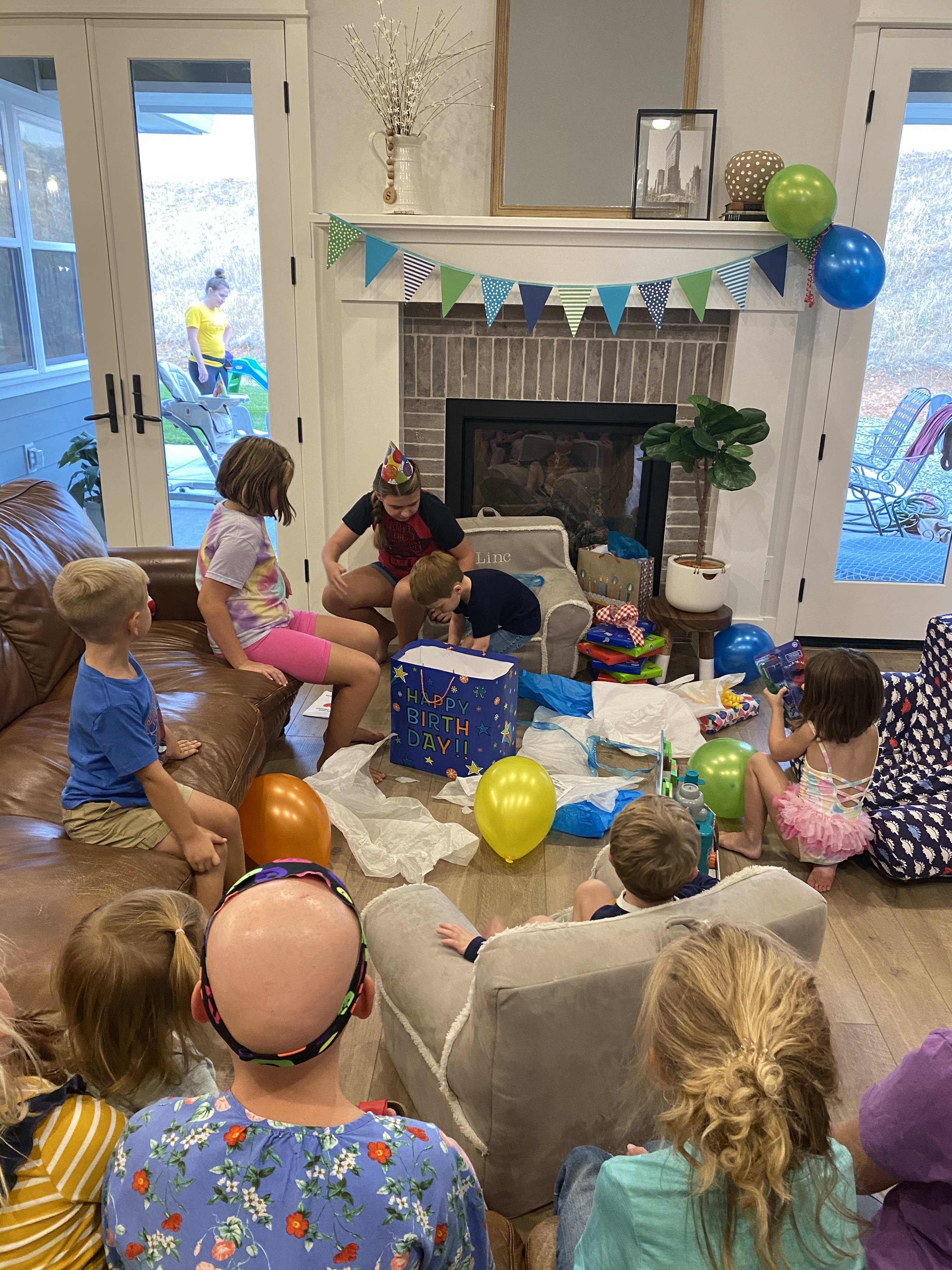 We did presents and playtime all day until our friends and family came over for a big taco bar and cake. Thatcher loves “chip bites.” Basically tortilla chips dipped in beans and rice sprinkled with cheese. His fav.