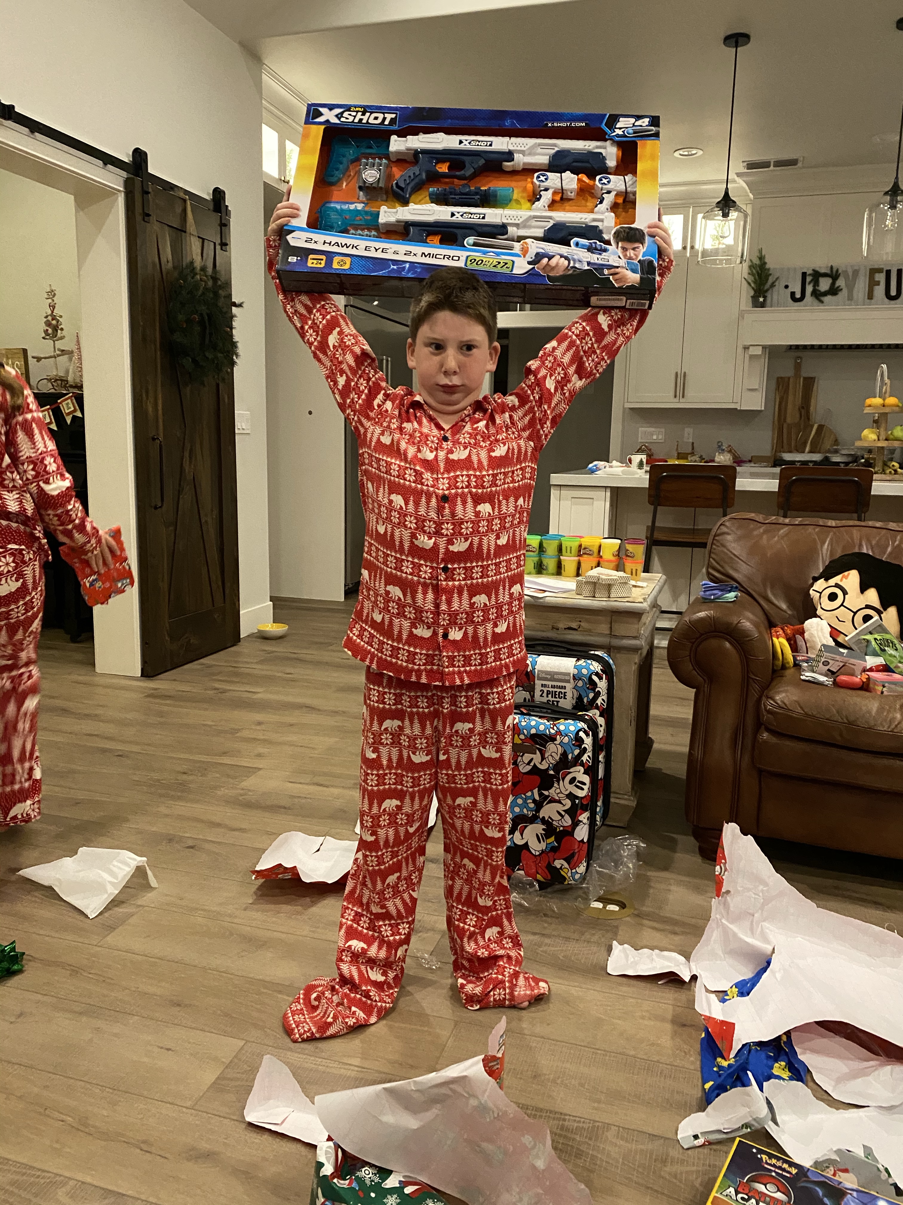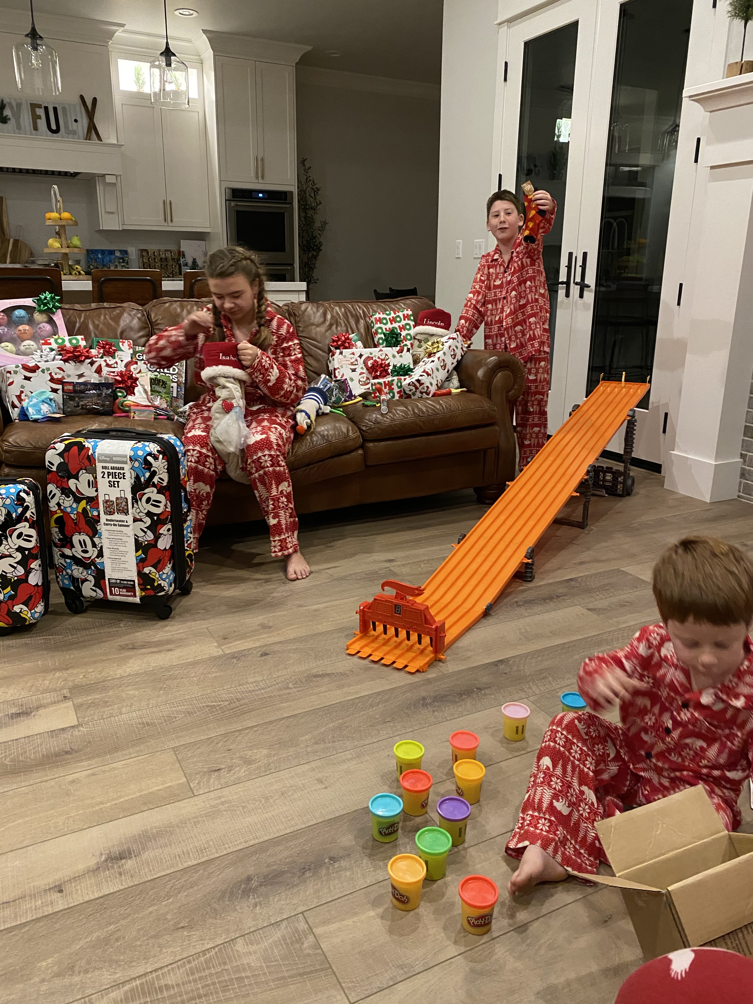Christmas morning was soooooo fun. For a change, we took turns opening gifts so there wasn’t just a rush of ripping and paper. It actually was really great and I think we will do that again. Kids are fun. Christmas is fun. We got over to grandma’s house about ninish and did gifts over there and breakfast. It’s tradition, grandpa makes Christmas eggs and I bring a bunch of cinnamon rolls. We played games, stayed in our jammies, eventually cleaned up and ate Christmas Dinner. Just a real great day all around.