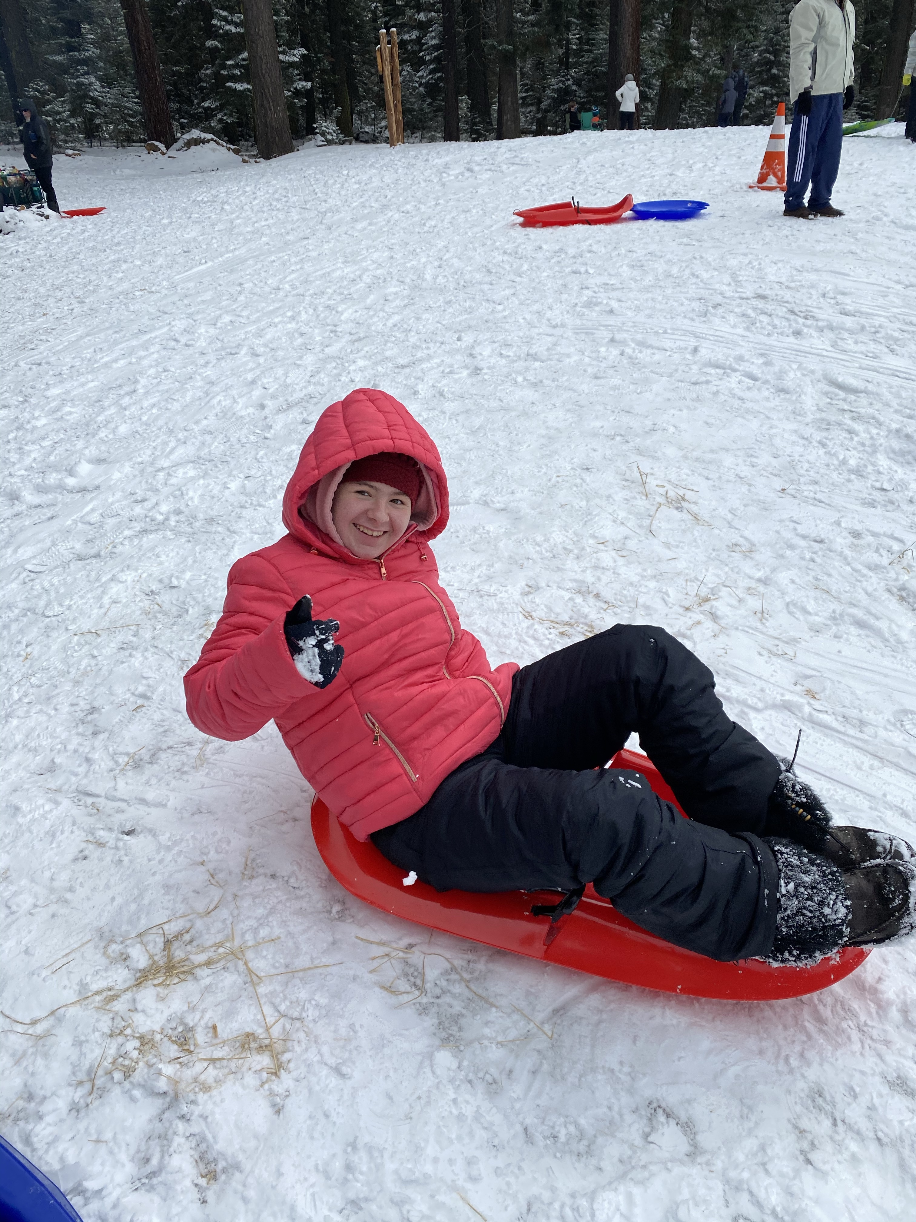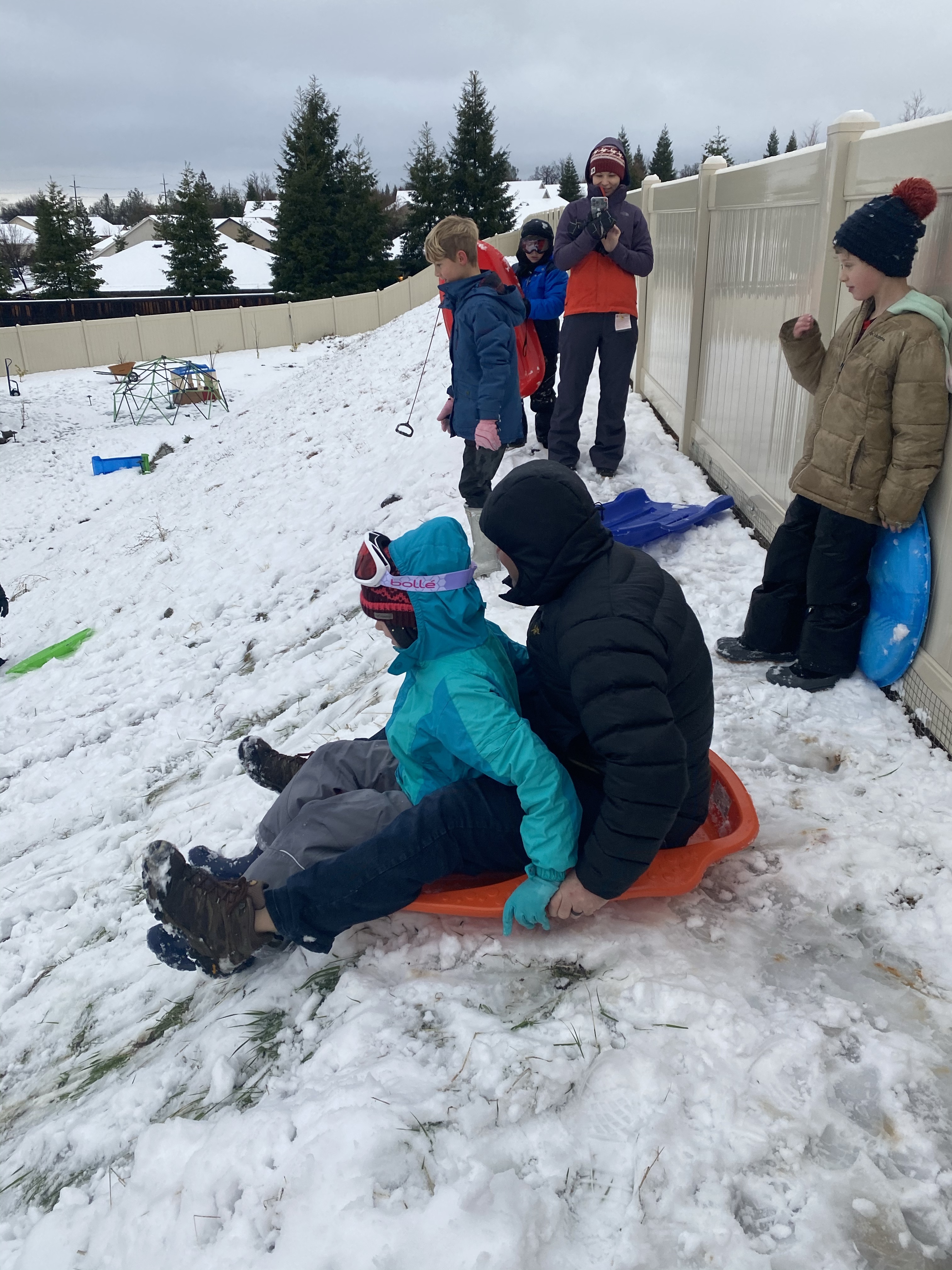 I forced everyone to go up to the snow one weekend for sledding. Everyone always drags their feet when I present them with an adventure but then they end up having fun and loving it. Linc was the most daring, he wanted to go all the way to the very top of Eskimo Hill! Probably could have used another few feet of snow up there lol but it worked out. A week after that, we had the lightest dusting of snow here at home. Happens like every other year or so, but it’s always a treat. They cancelled school for the day because of roads, and my kids were dressed and outside by 7 am. It’s so warm in California that most of the snow was gone by the next day, just turns to slush by the afternoon. Our backyard hill was perfect for short sledding though!