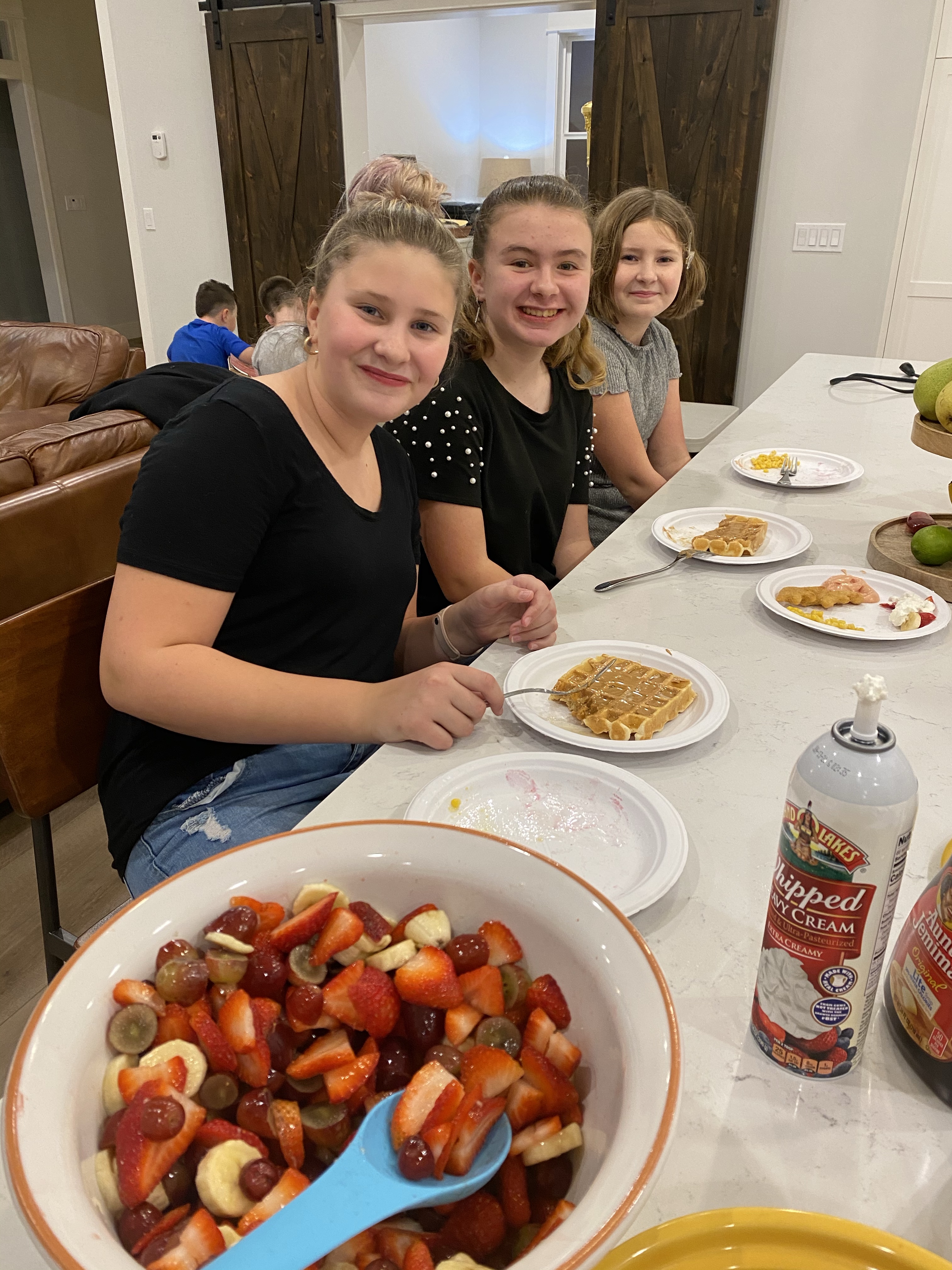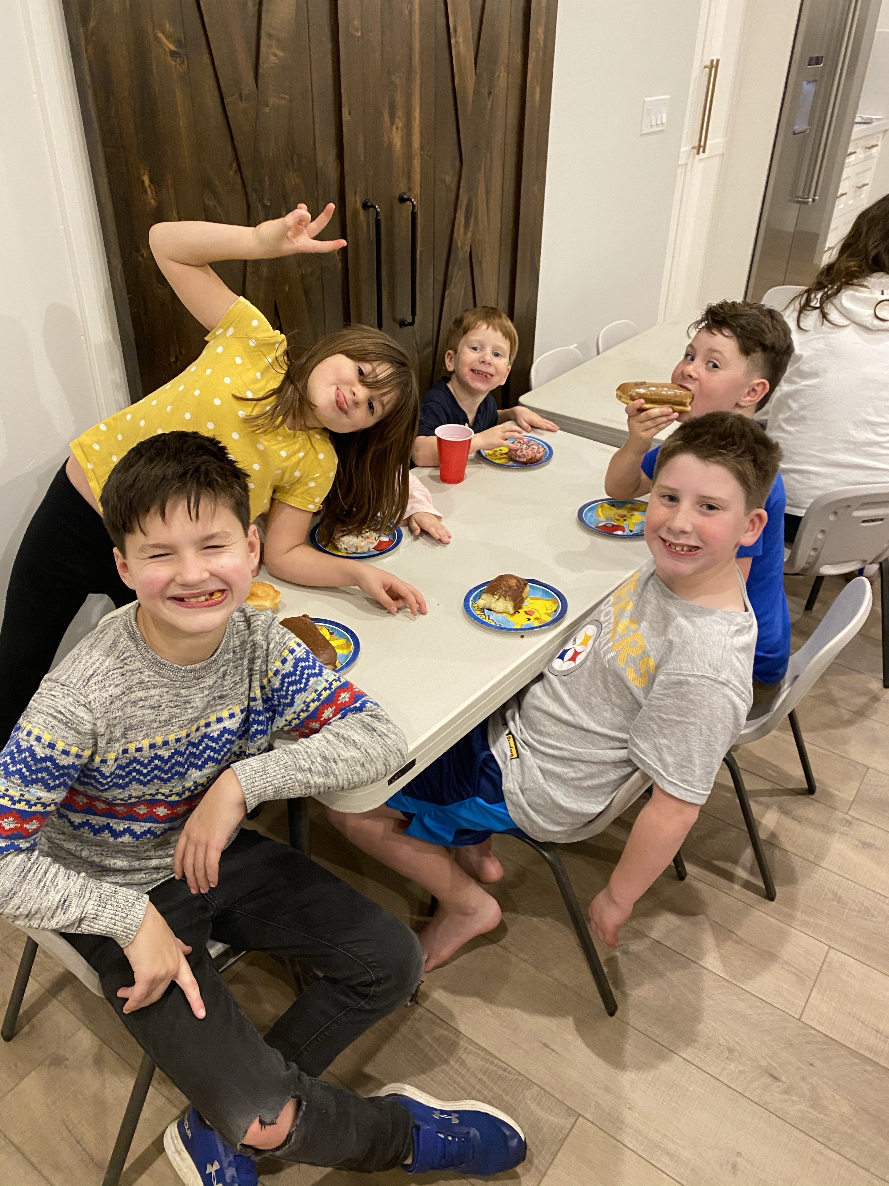 Linc loves chicken nuggets maybe more than anything on earth, so we had everyone over for a chicken and waffles party. And donuts, always donuts. No cake for this kid.