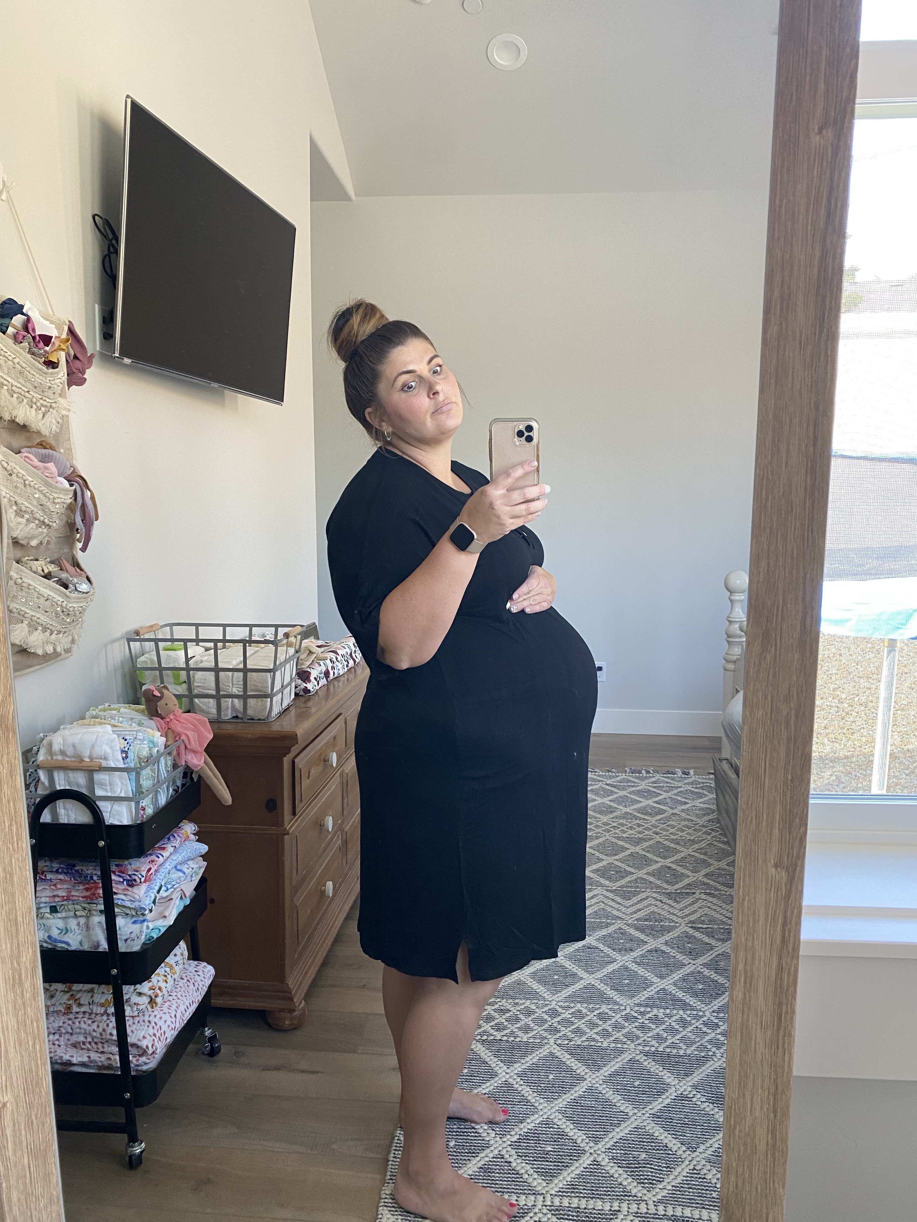 We are getting close to the end now- our date is scheduled for September 3rd. I will be 39 weeks pregnant, this babe is measuring two weeks ahead and there is a chance they will move me up a little bit. I have a little station all set up with diapers and clothes and tiny baby things. Softie jammies and little hats and the cutest swaddle blankets. It doesn’t feel real that we get to do this again, and I think it won’t be real until she is in my arms and home with us. I didn’t really plan to have children 12 years apart, but here we are.